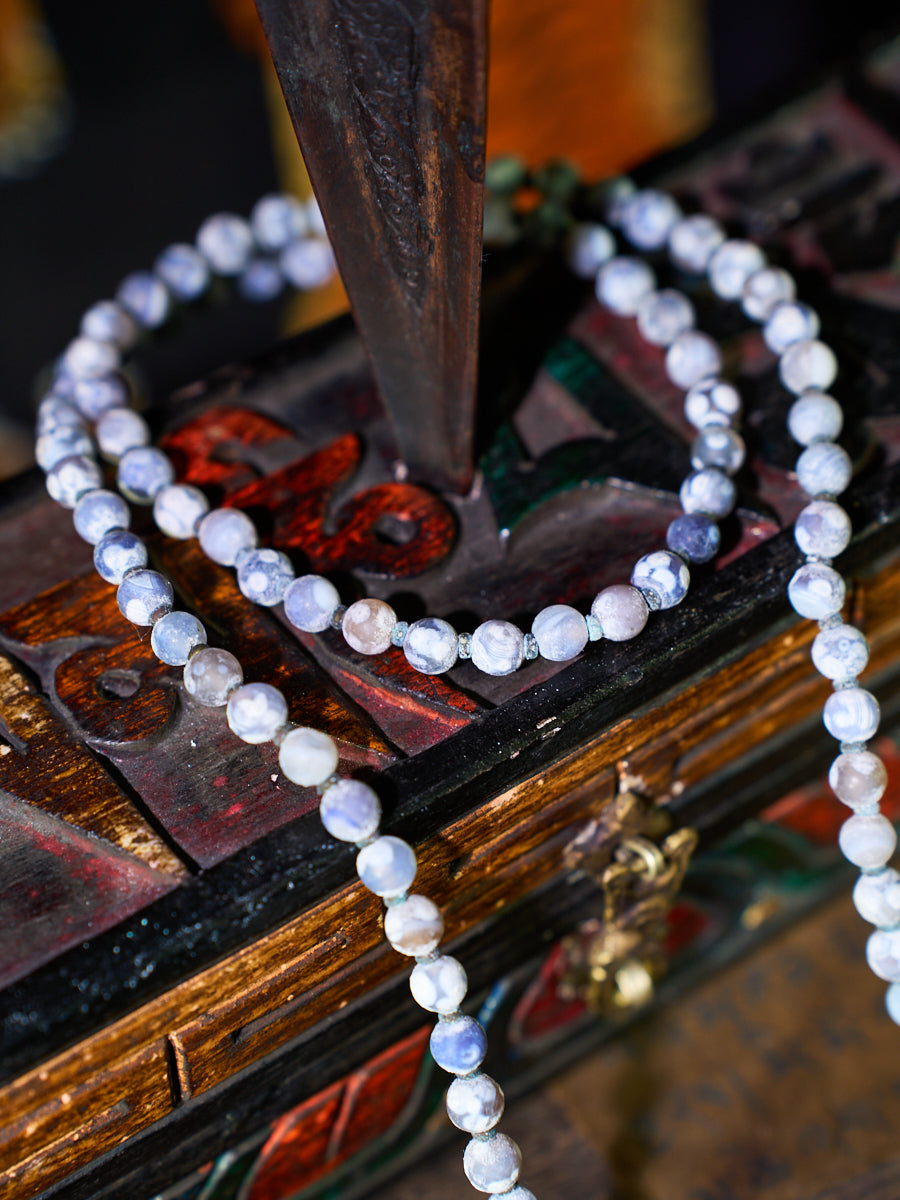 This series is more than jewelry; it is a consecrated spiritual tool. We craft each 108-bead mala from natural materials like Bodhi seeds, turquoise, and obsidian, adhering to traditional methods.