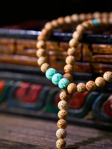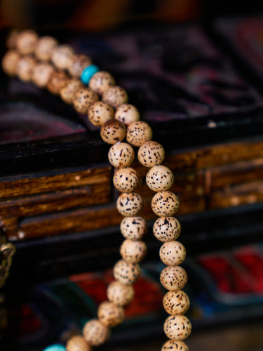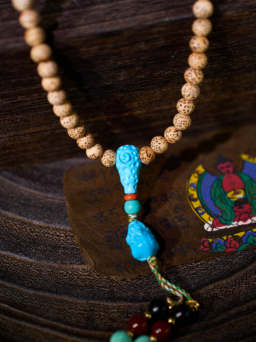 This series is more than jewelry; it is a consecrated spiritual tool. We craft each 108-bead mala from natural materials like Bodhi seeds, turquoise, and obsidian, adhering to traditional methods.