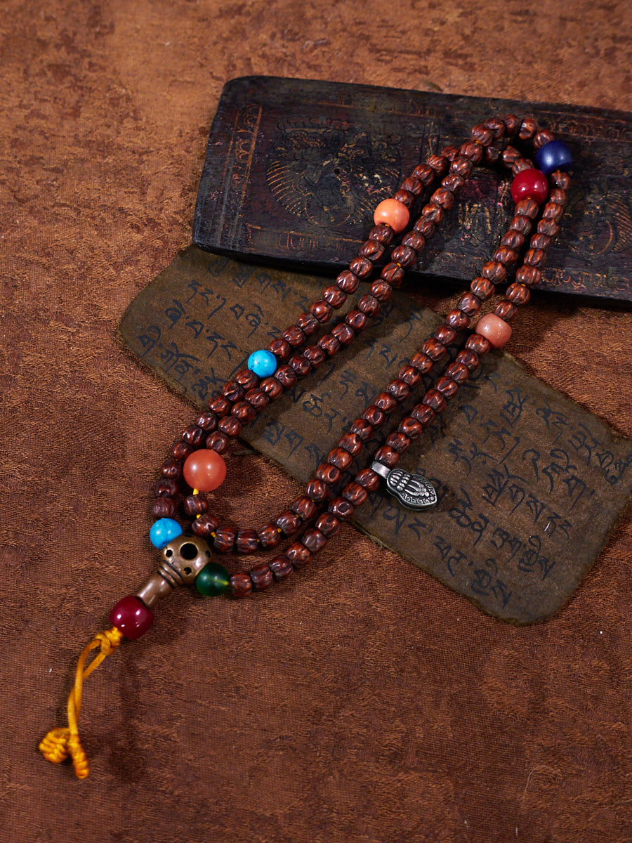 This series is more than jewelry; it is a consecrated spiritual tool. We craft each 108-bead mala from natural materials like Bodhi seeds, turquoise, and obsidian, adhering to traditional methods.
