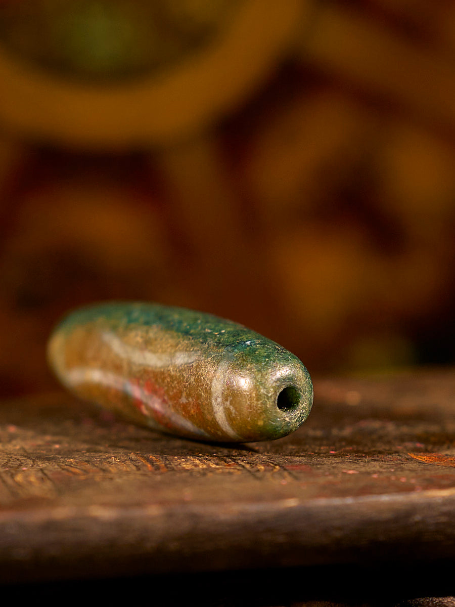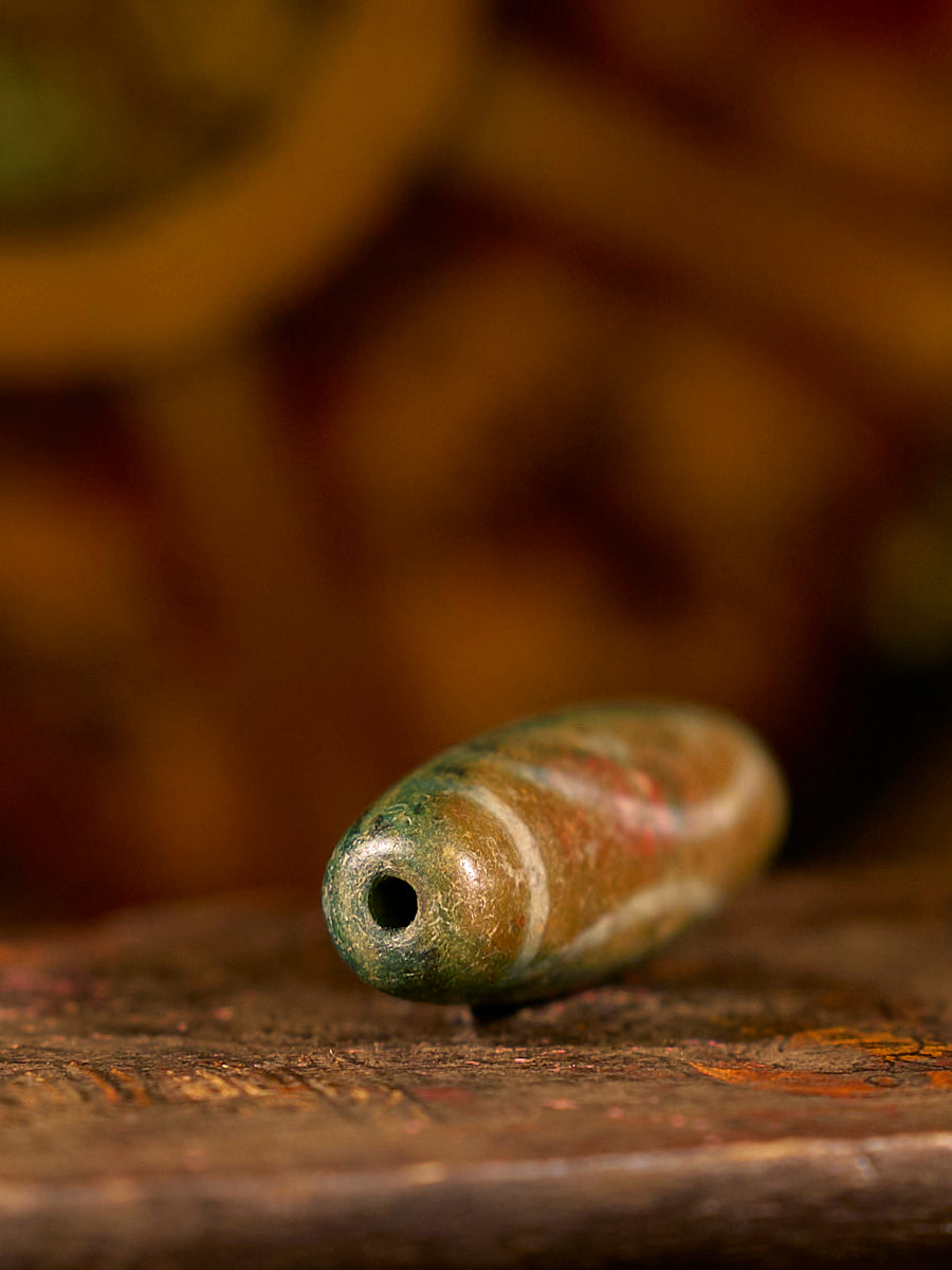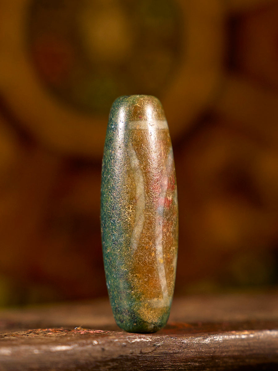 Auspicious Union Dragon Two-Eyed Agate Dzi Bead