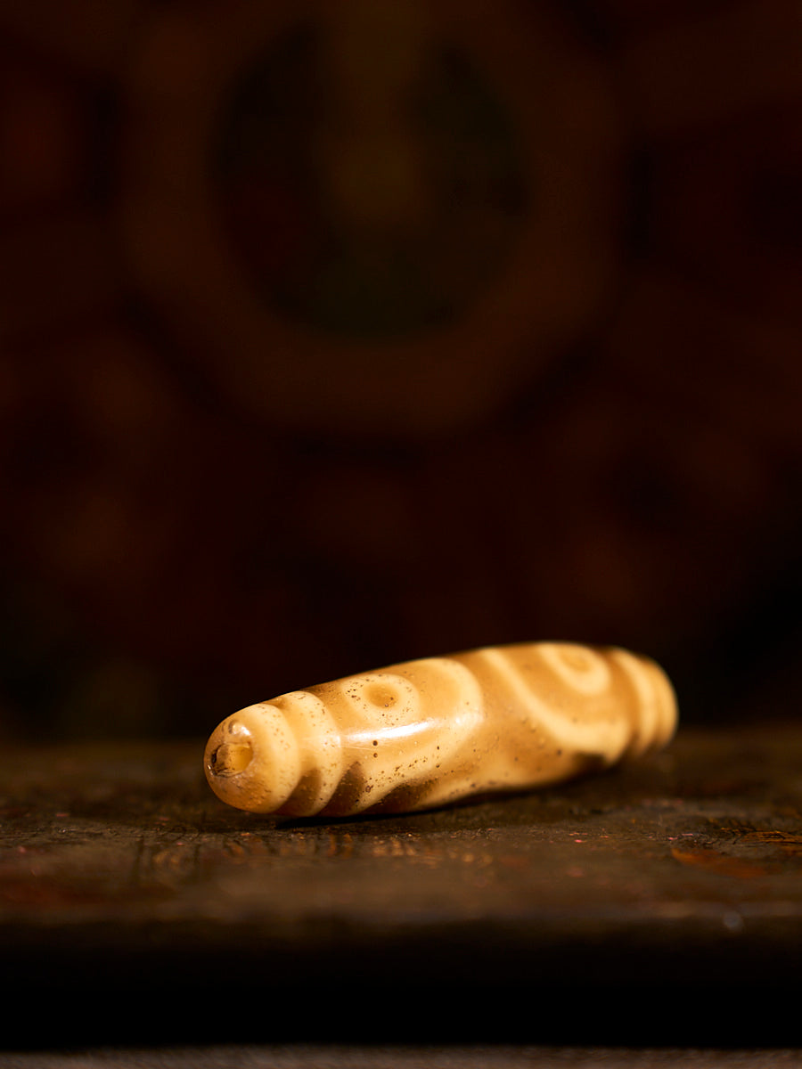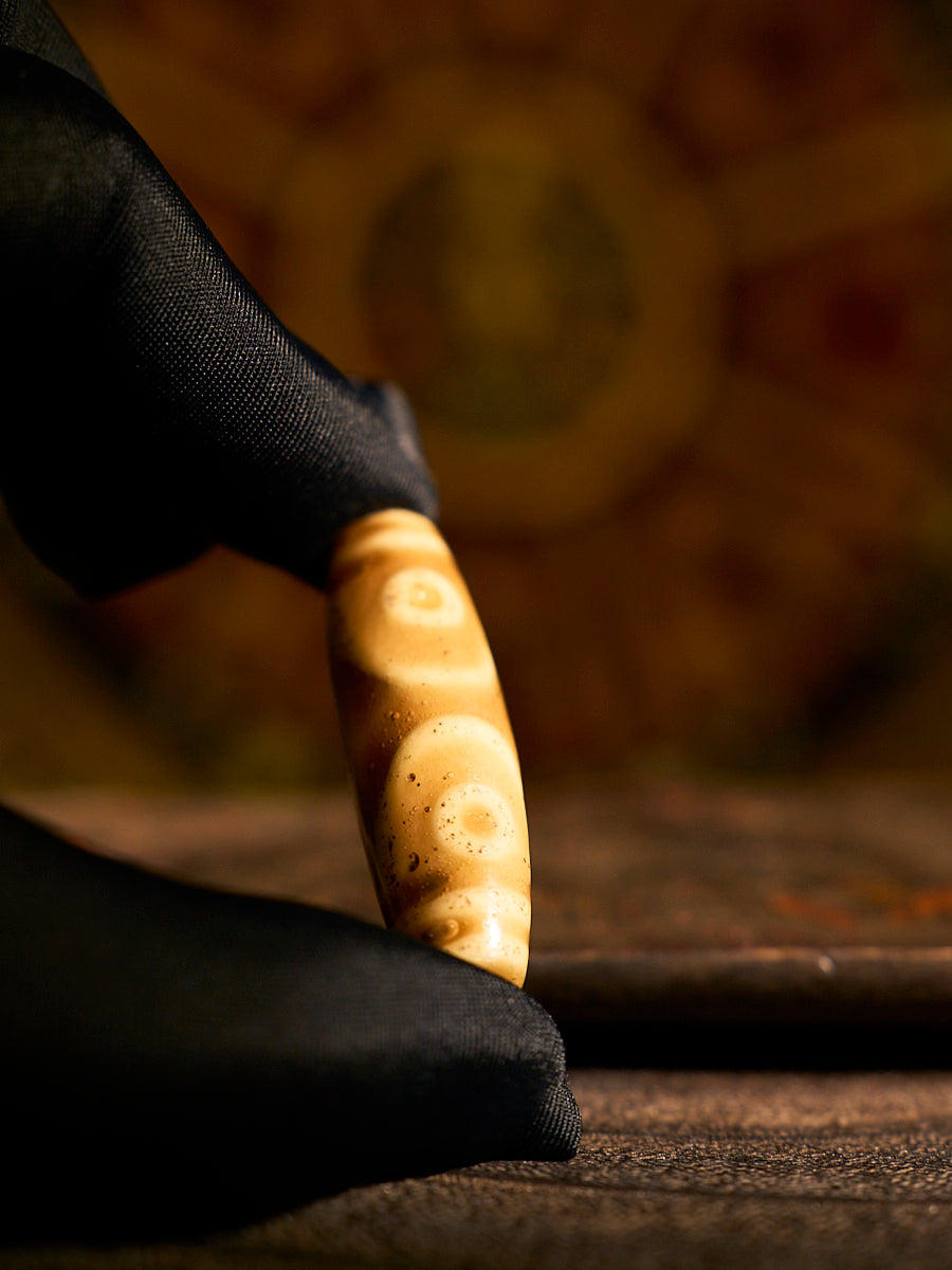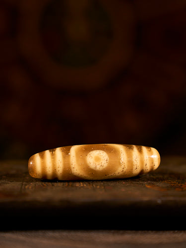 Glass “Three-Eyed Treasure Canopy” Dzi Bead