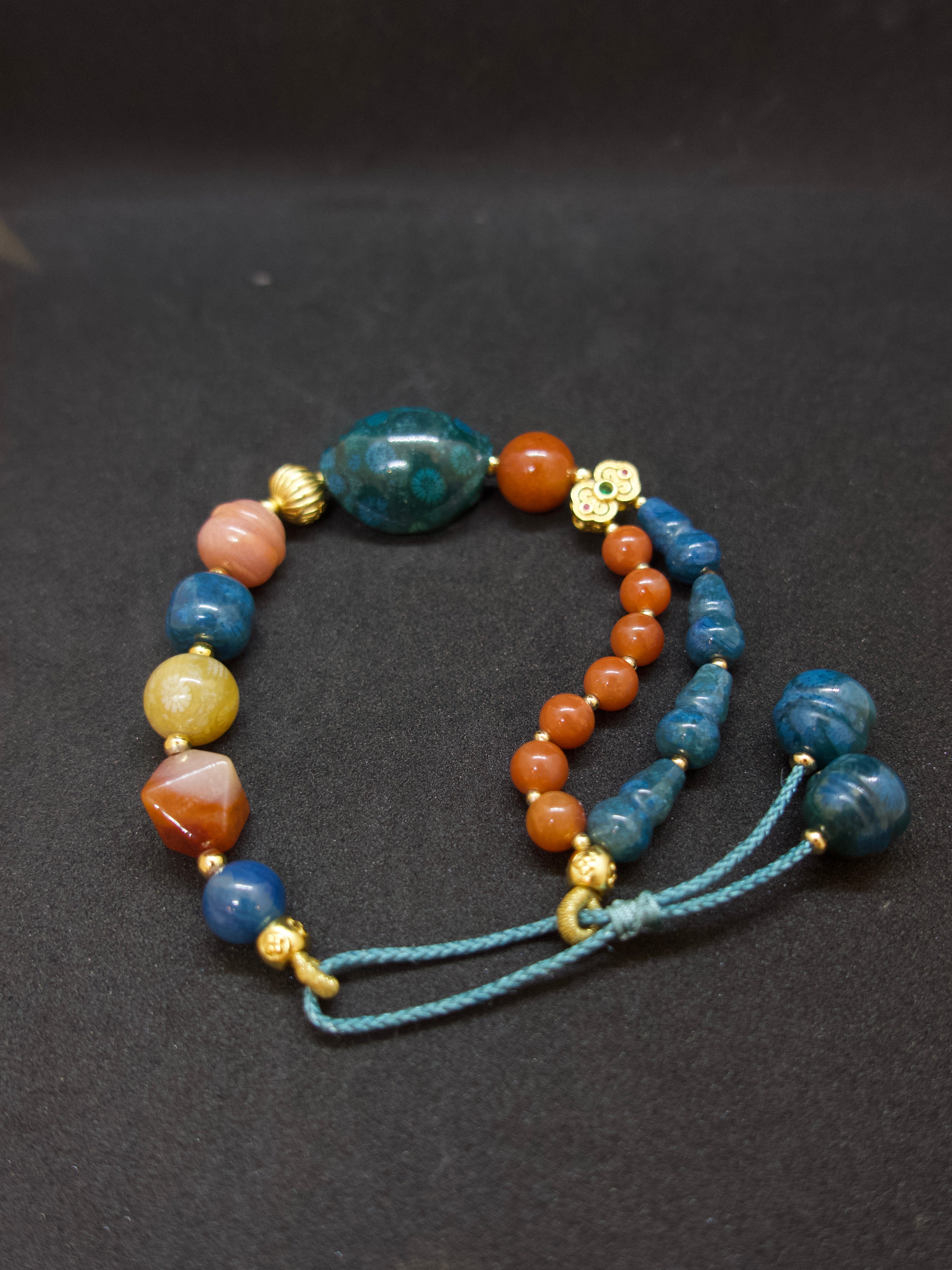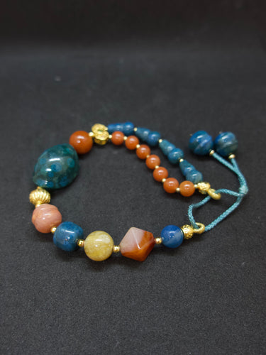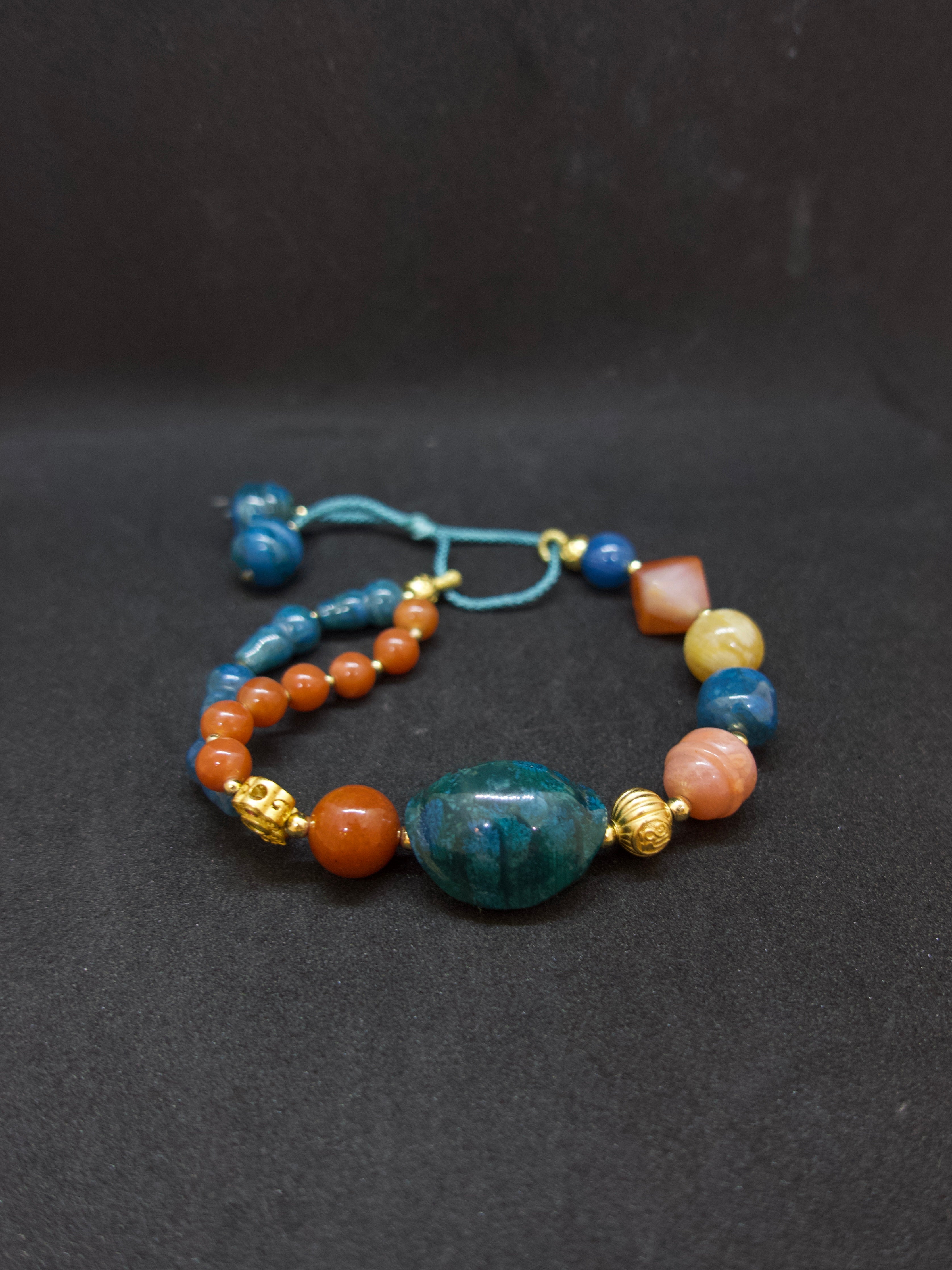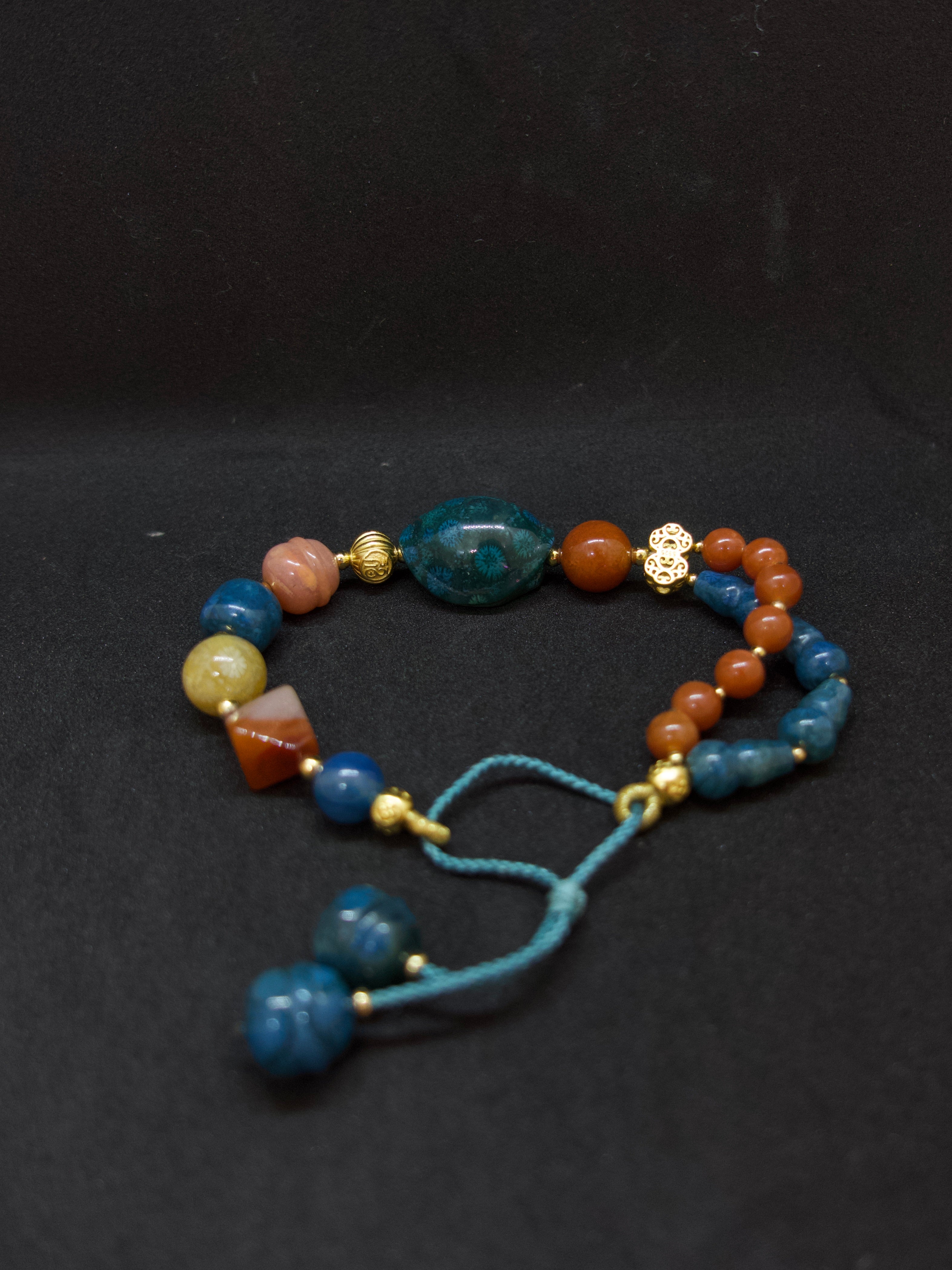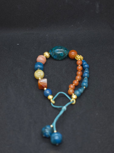 Agatized Coral Gold-Silver Tassel Energy Bracelet
