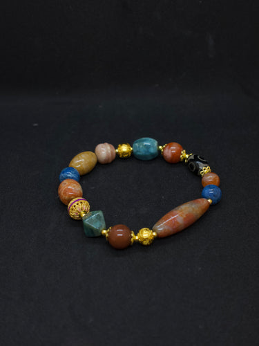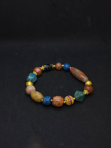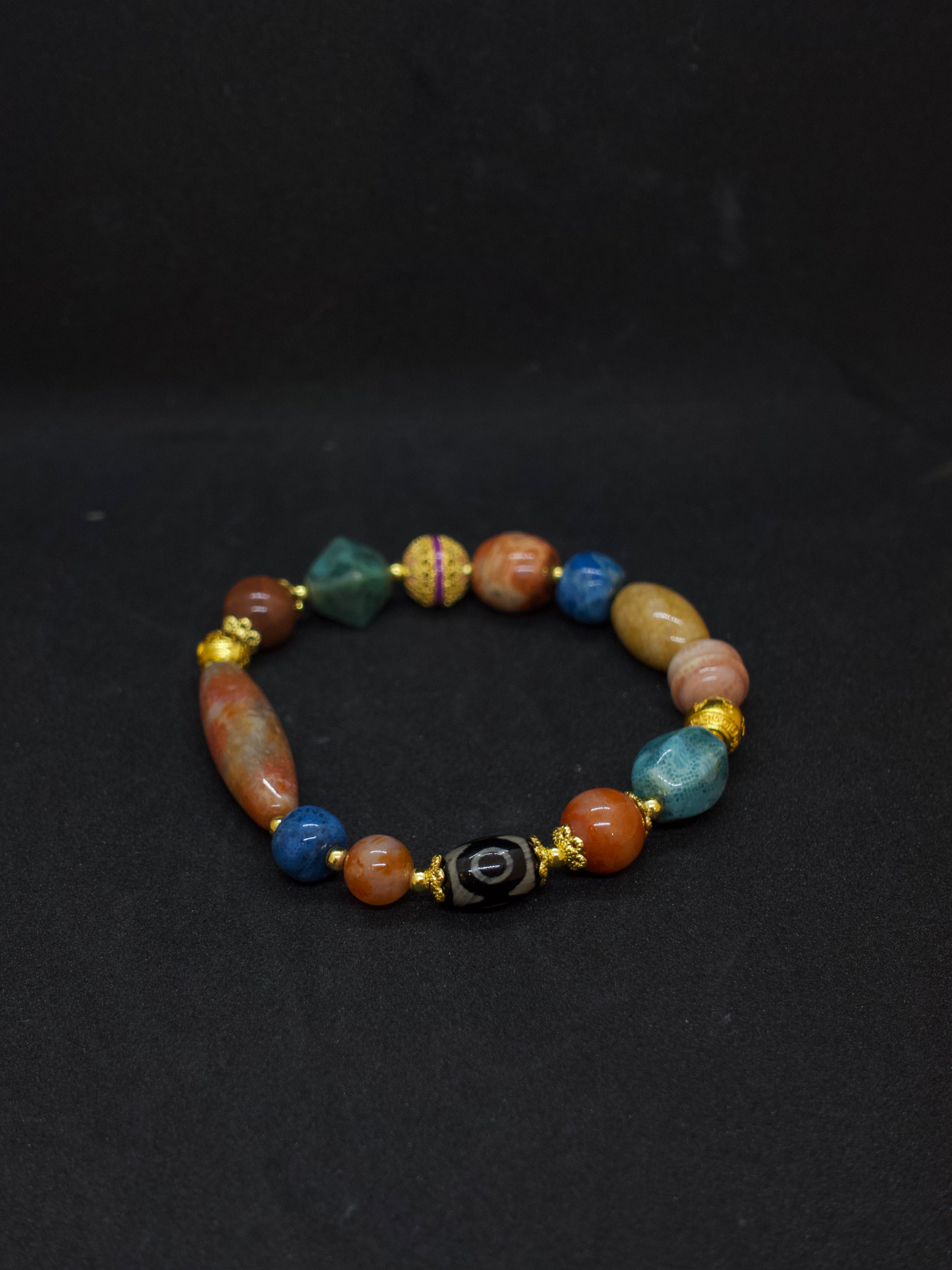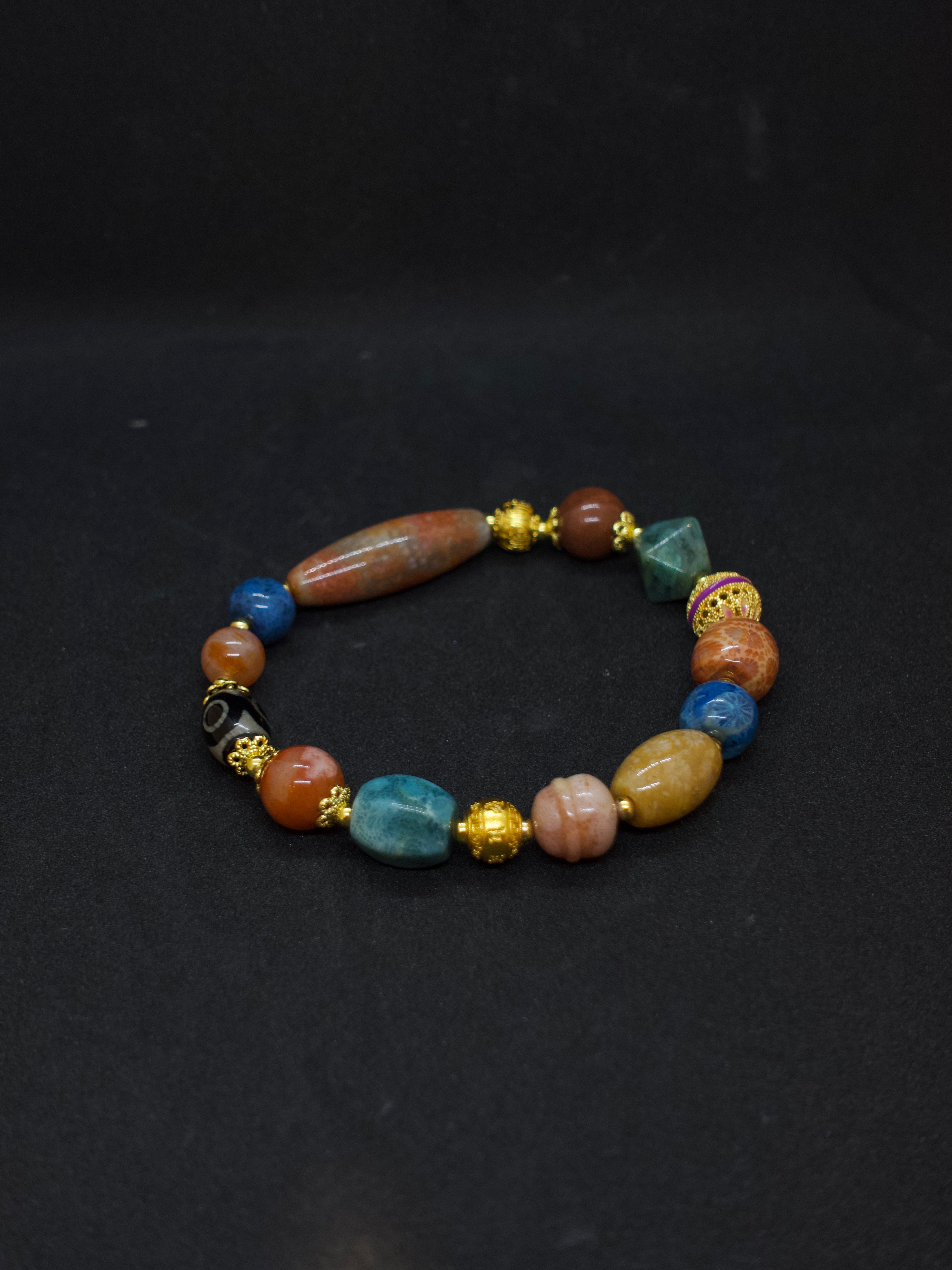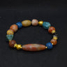 Agatized Coral Wisdom Guardian Three-Eyed Dzi Silver Energy Bracelet