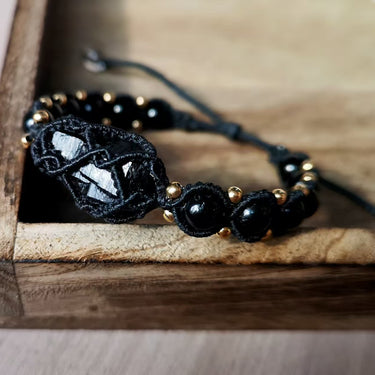 The package includes: Black Tourmaline Shield Bracelet – Handcrafted Protection with Brass Accents*1
