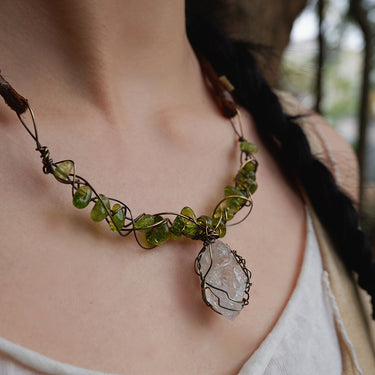 Earth’s Essence Handcrafted Green Peridot & Crystal Necklace