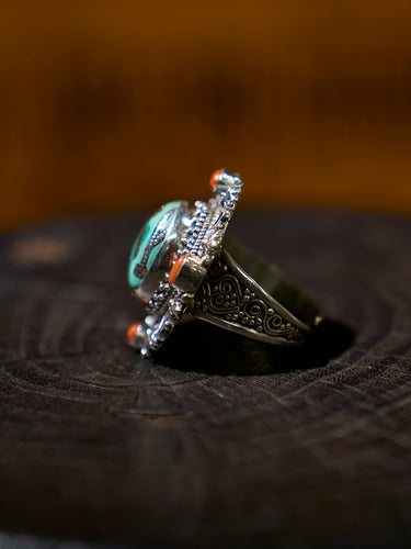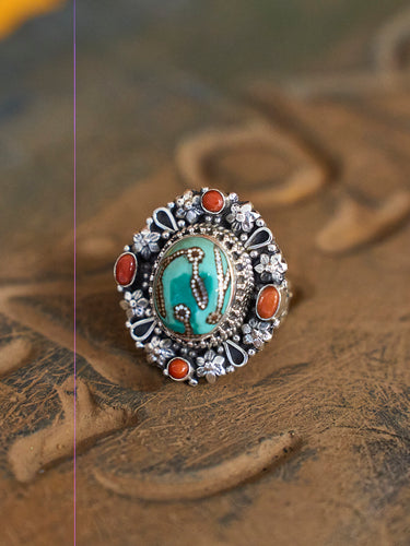 Sacred Turquoise Coral Silver Ring Spiritual Healing Good Luck Jewelry