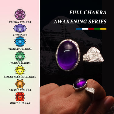 KAILASH ENERGY Chakra Awakening Ring Seven Chakra Gemstone Sterling Silver Adjustable