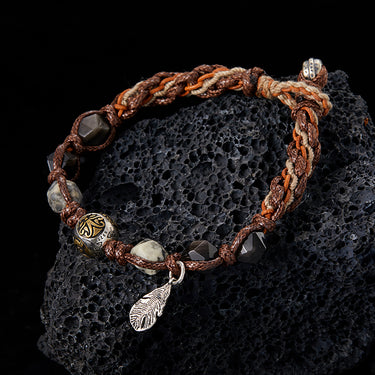 Material: Wax Rope, Stering Silver, Silver Obsidian
