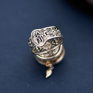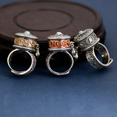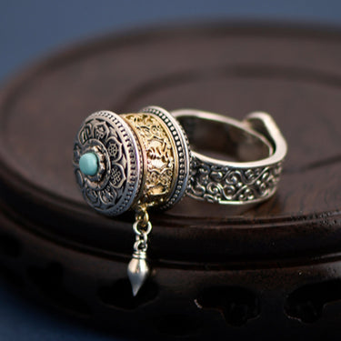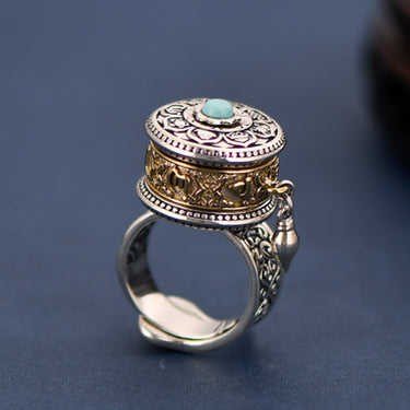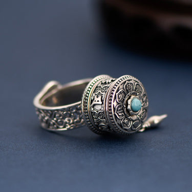 Tibetan Blessing Prayer Wheel Ring – Silver and Turquoise Spinner