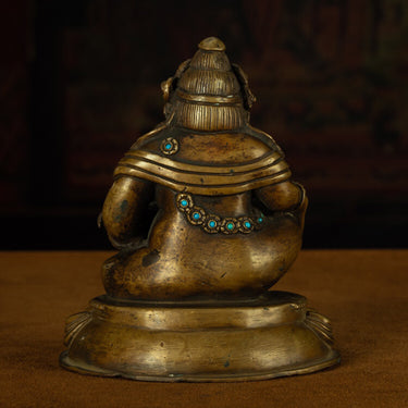 13th Century Tibetan Antique Buddha Statue Yellow God of Wealth Turquoise Inlay Pala Style