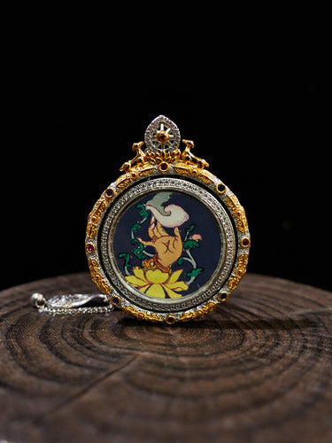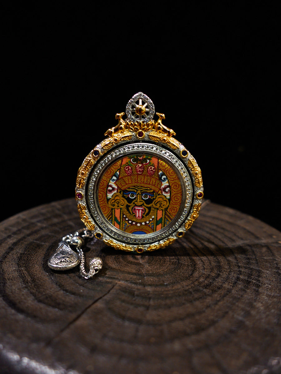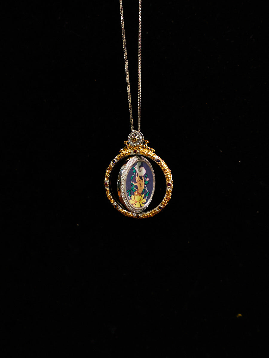 18K Gold Jachik Lhamo Prosperity Dual-Sided Thangka Pendant