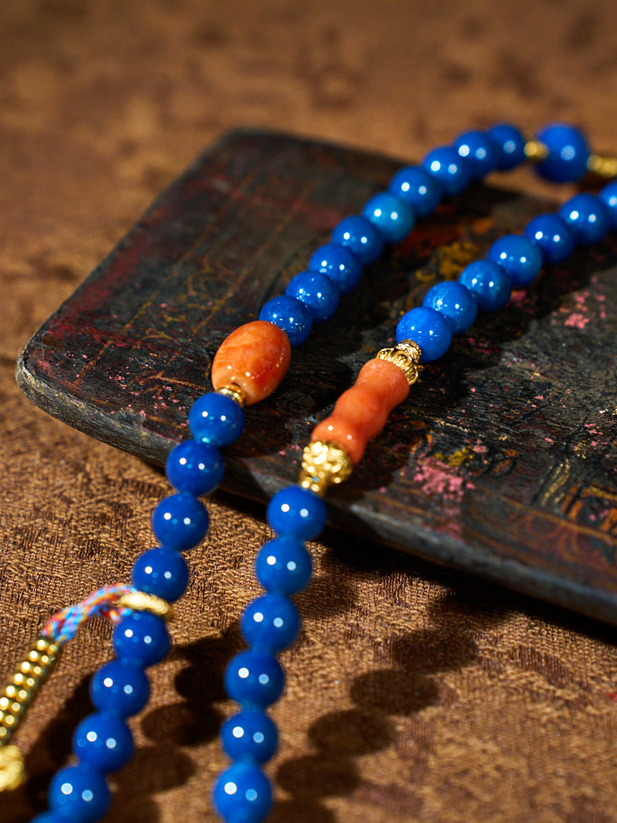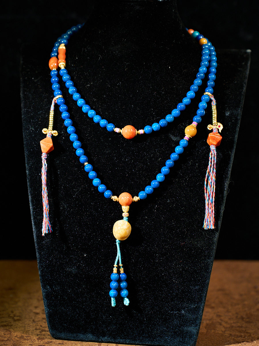 Agatized Corale Azure Rhythm Mala Necklace