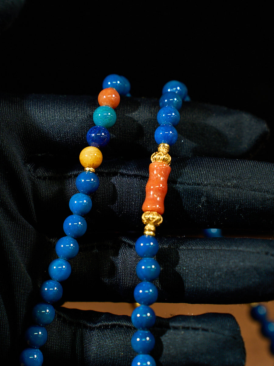 Designed for both meditation and daily wear, this mala reflects the idea of rhythm as a form of inner order. Each bead marks a moment of presence, supporting focus, emotional steadiness, and long-term intention. Rather than dramatic symbolism, Azure Rhythm offers something more enduring—a wearable sense of continuity, clarity, and calm alignment carried through time.