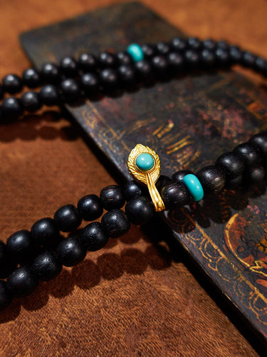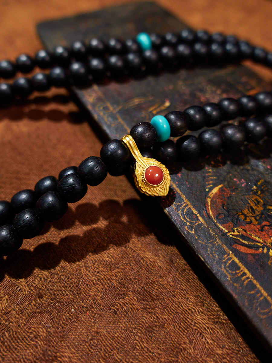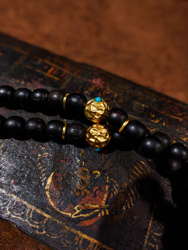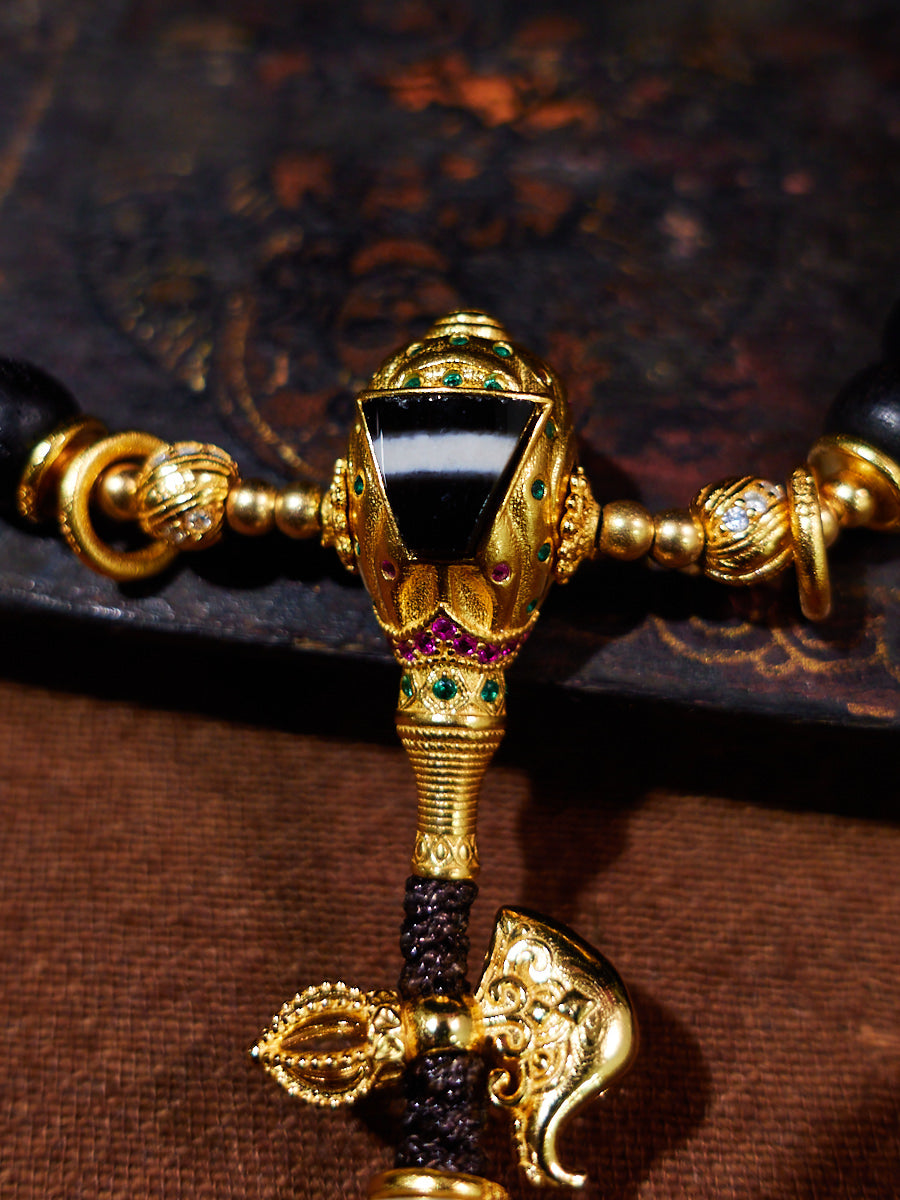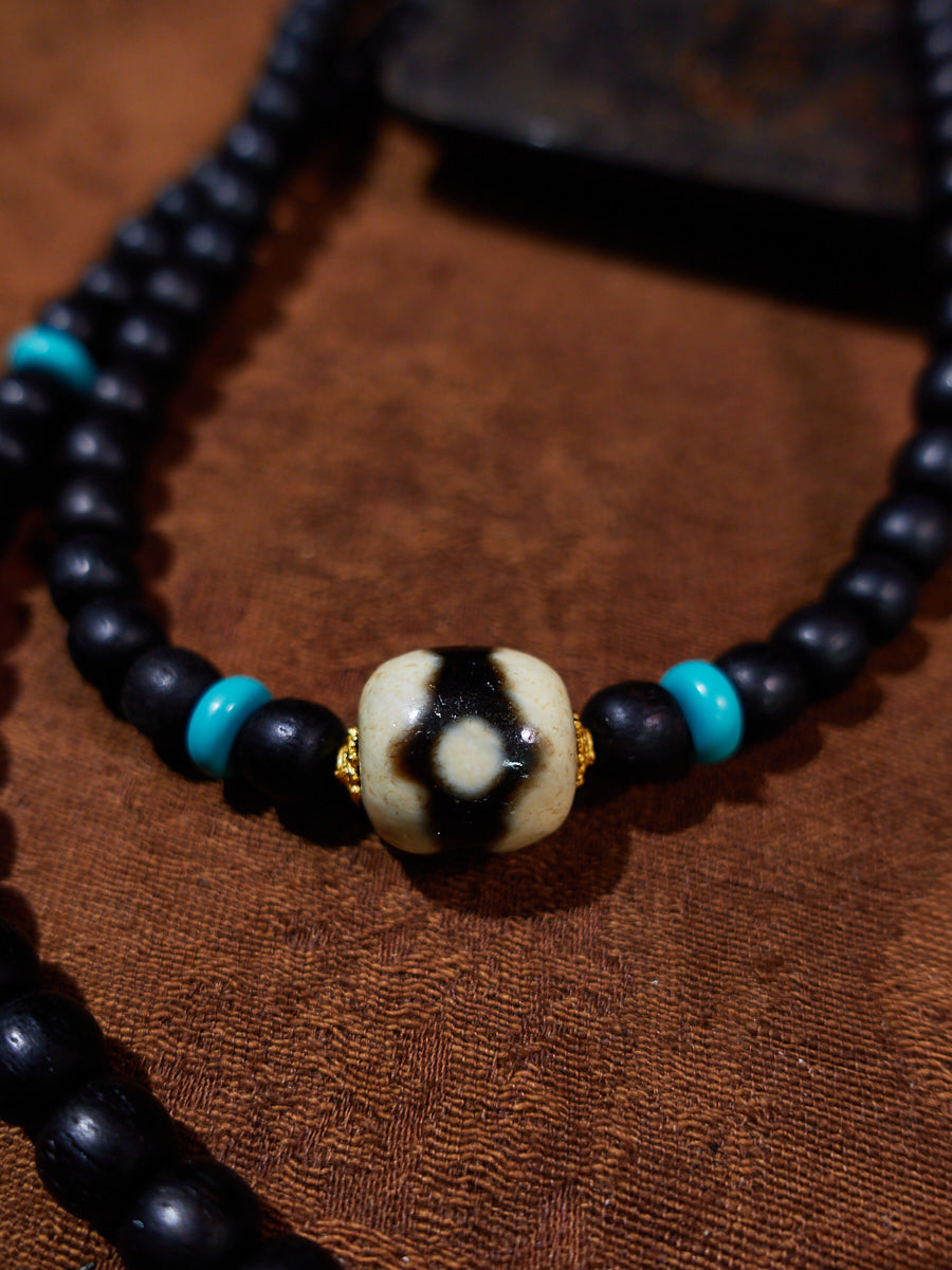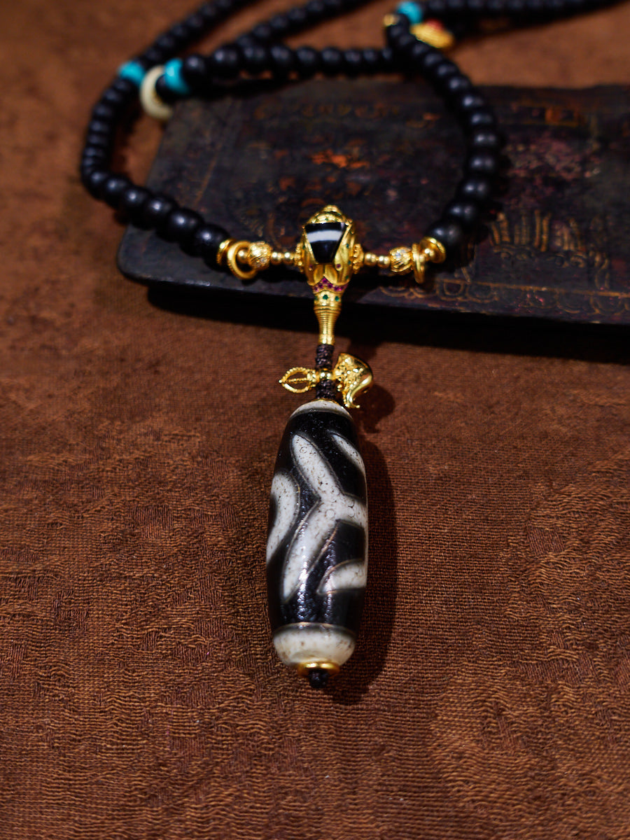 Celestial Tranquility Tibetan Dzi & Agarwood 18K Gold Necklace