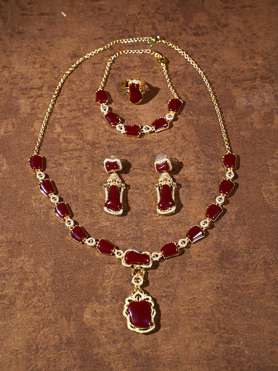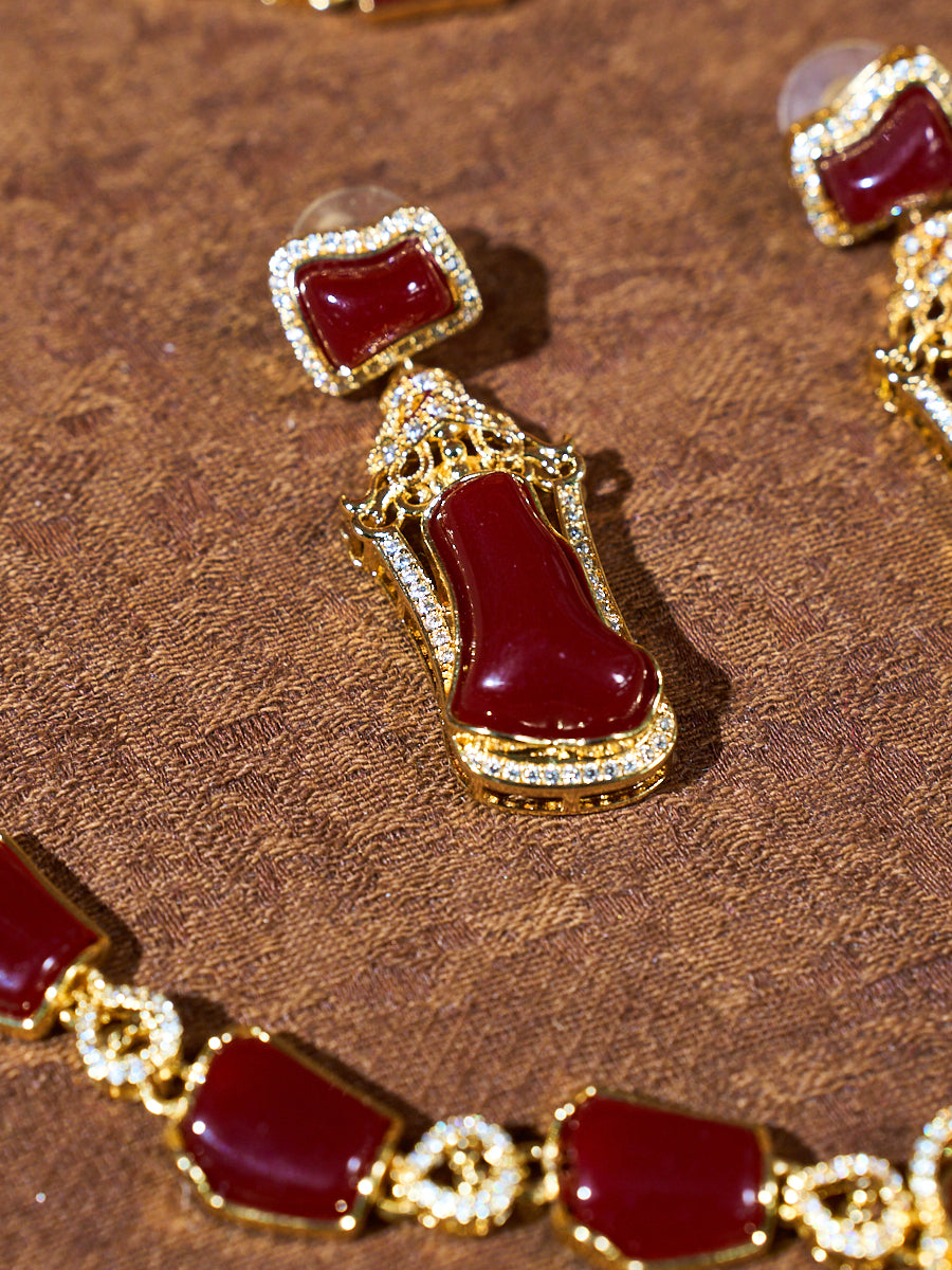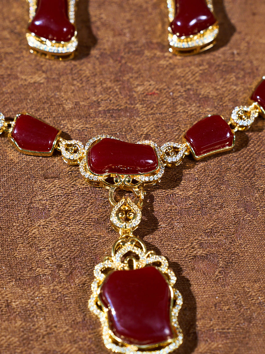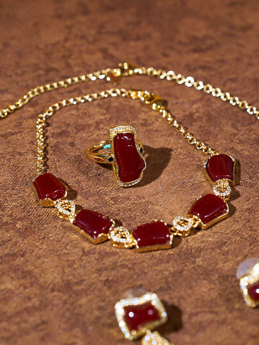 Crimson Offering Ritual Coral Stone Jewelry Set