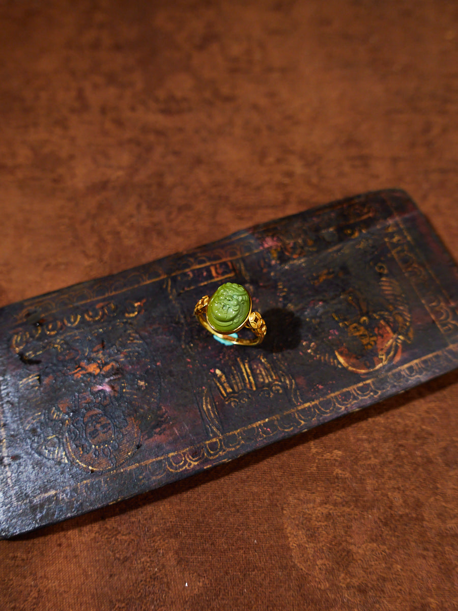 Divine Guardian Turquoise Mahakala 18K Gold Ring