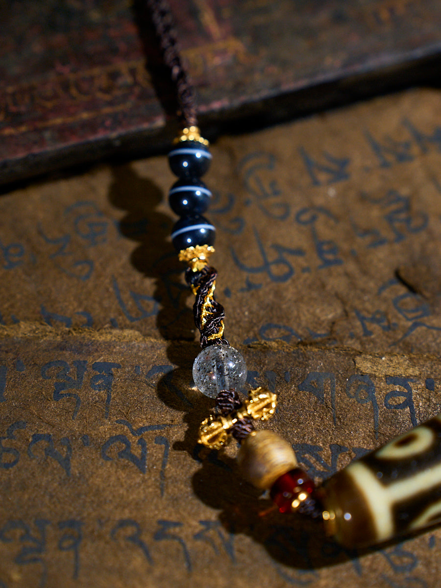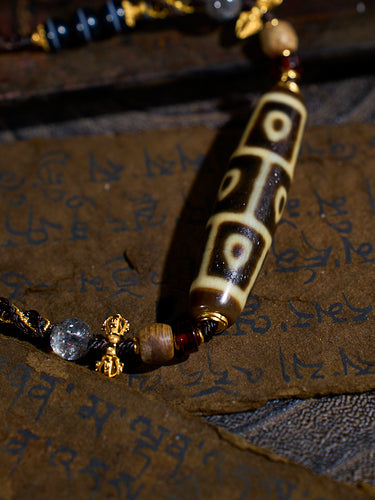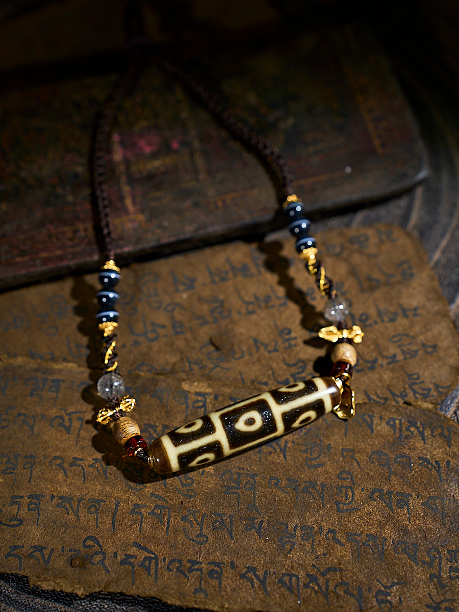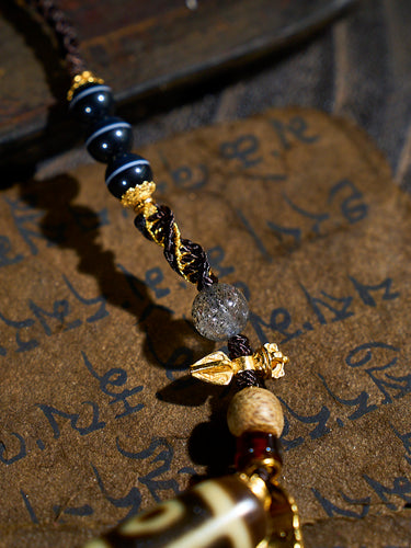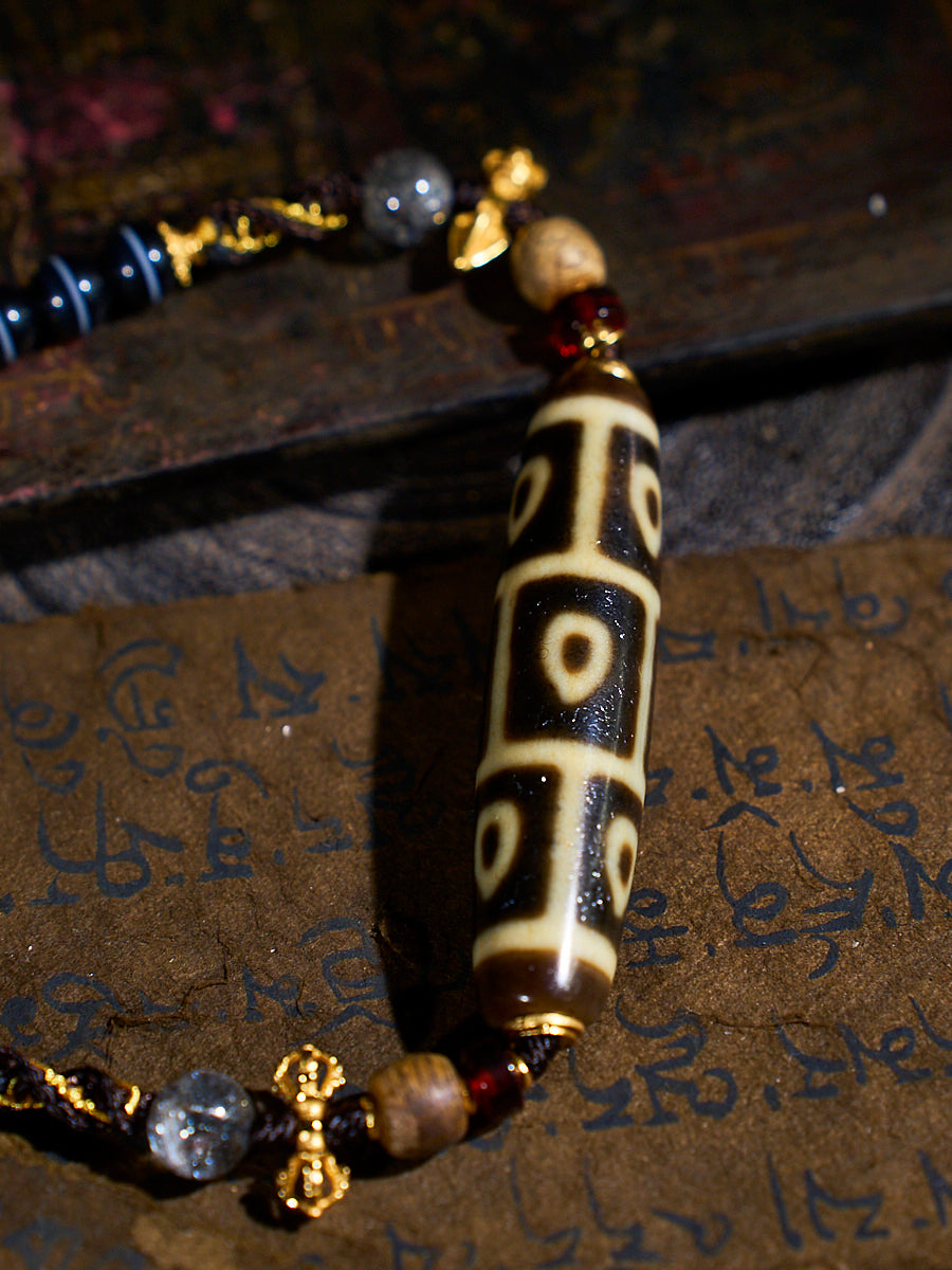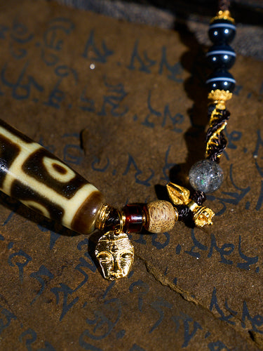 Divine Vision Shangkan Nine-Eyed Agate 18K Gold Dzi Pendant