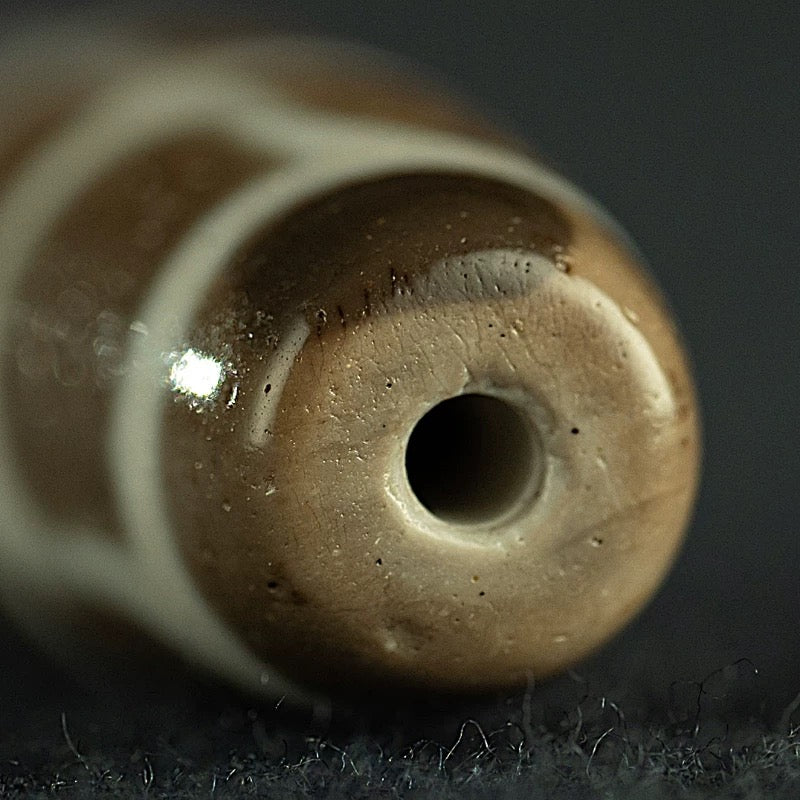 The bead displays delicate and natural weathering, with authentically worn perforations. Although its tone is relatively light, the color saturation remains impressive and appealing. Given the rarity of this totem, even in a lighter shade, the bead holds significant collectible value.