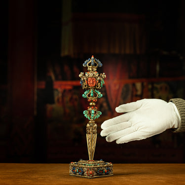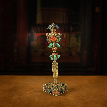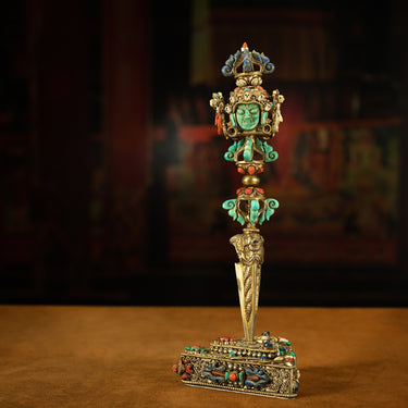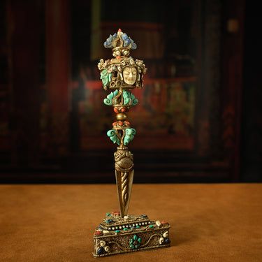 The intricate craftsmanship and gemstone inlays embody centuries of Tibetan Buddhist tradition, making this Vajra Sword a true treasure in any collection. It is not only an exquisite piece of art but also a functional tool for those seeking spiritual protection, peace, and harmony. Ideal for spiritual practitioners or collectors, this Vajra Demon Subduing Sword is an essential instrument for safeguarding one's energy and enhancing meditation practices. Its presence brings divine protection, helping to overcome obstacles and empower the wearer with spiritual strength.