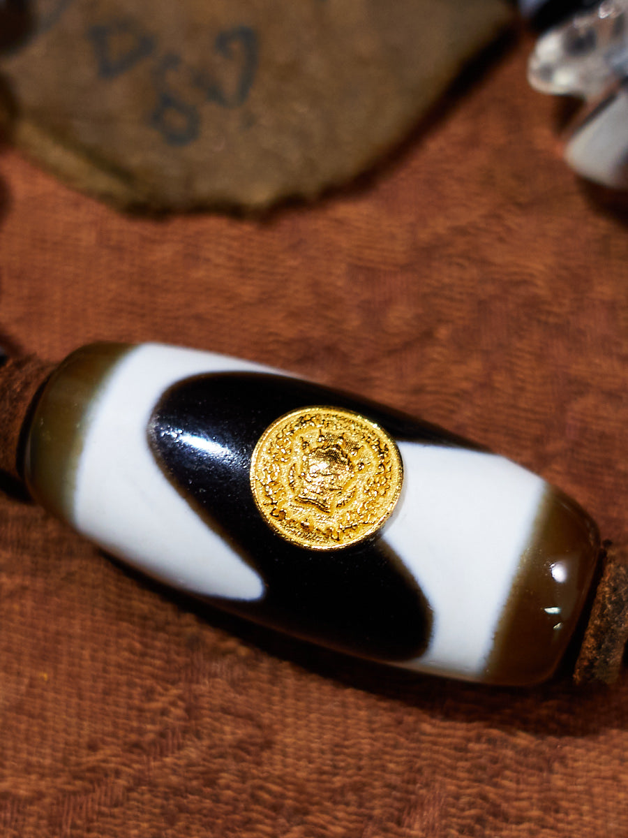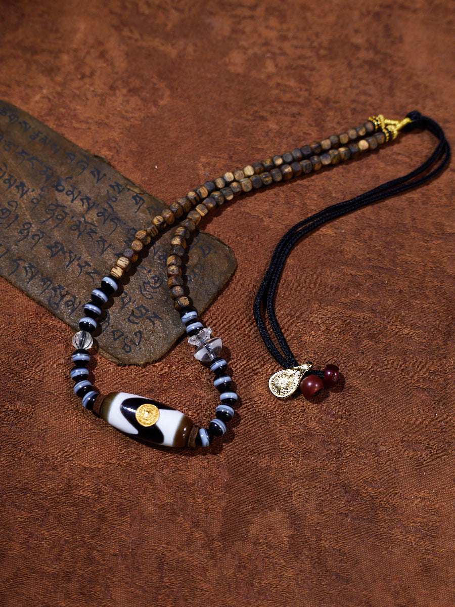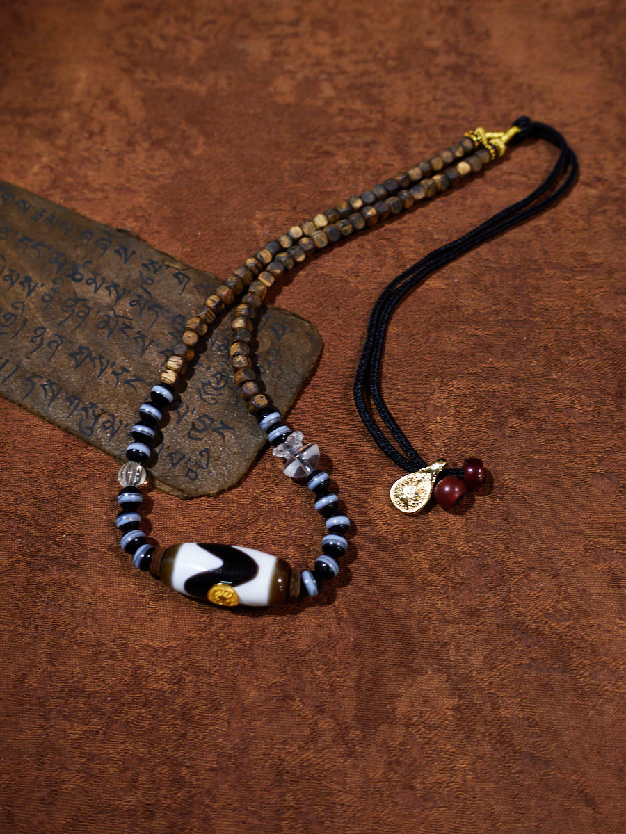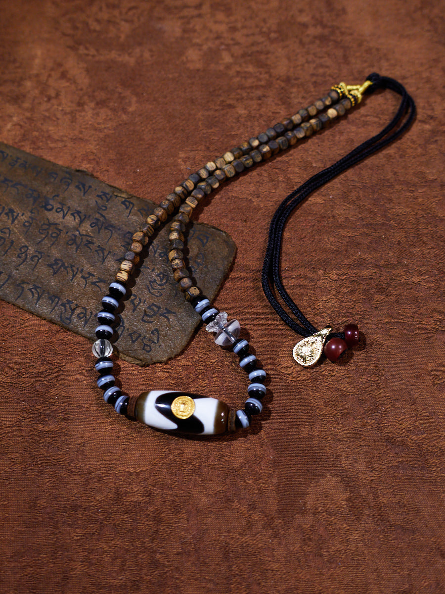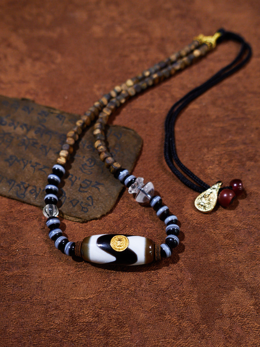 Fierce Harmony Shale White Tiger Tooth Dzi 18K Gold Necklace