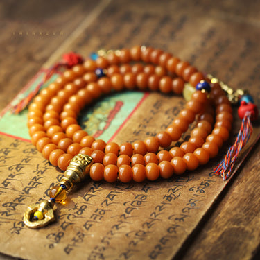 The Kailash Energy 108 Beads Wealth Mala Necklace is a powerful symbol of prosperity, wisdom, and spiritual growth. Handcrafted with sacred Bodhi seeds, luminous amber, deep blue lapis lazuli, and brass elements, this mala is designed to attract wealth and positive energy. Bodhi seeds hold deep spiritual significance, representing enlightenment and mindfulness, while amber is known for its ability to enhance creativity, clarity, and abundance. The inclusion of lapis lazuli strengthens intuition and wisdom, making this necklace a potent talisman for success and inner balance.
