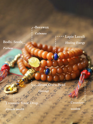 Material: Bodhi Seeds, Beeswax, Lapis Lazuli, Brass