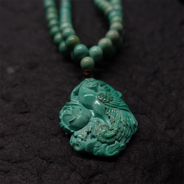 【Unique Item】 Phoenix Energy Turquoise Necklace with Hand-Carved Tibetan Craftsmanship