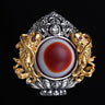 Prosperity Harmony Twin Fish Agate Red Eye Silver Pendant Prayer Wheel
