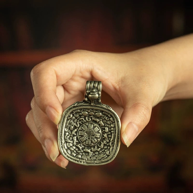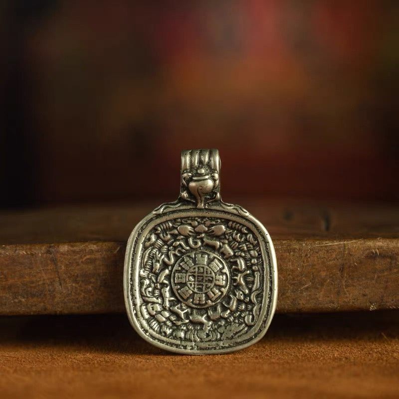 Qing Dynasty Tibetan Nine-Palace Bagua Protection Copper Pendant from Tibet