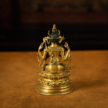 This rare temple-inherited full of gold four-armed Avalokitesvara statue on a double lotus seat is an extraordinary work of spiritual and historical value. It was made by the highly respected Tibetan monks of Nyingma Jilan Monastery with first-class craftsmanship and passed down from generation to generation. This extraordinary work is called the "King of Sculptures", and the four-armed Avalokitesvara sits on a double lotus seat. The all-gold finish exudes divine elegance and power. The craftsmanship is exquisite and the level is extremely high. Inherited from Minzhuling Monastery in the early years, the original collection is very special