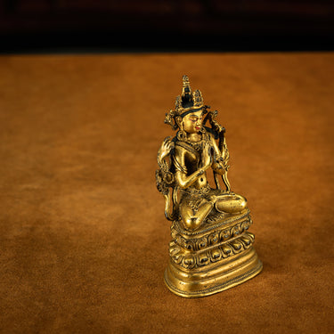 This statue has profound spiritual symbolism. It is not only an artistic masterpiece, but also a tool for personal transformation. The compassionate gaze of the bodhisattva brings comfort to all who are gazed at, providing spiritual protection and guiding the viewer to enlightenment. Revered for its precious tradition and craftsmanship, this statue brings peace, healing and a deep sense of connection to those who encounter it. Ideal for collectors and spiritual practitioners, this statue provides both a visual connection and a connection to the Tibetan Buddhist tradition and the timeless wisdom of Avalokitesvara. Dimensions: Height 12.5 cm Base diameter 5 cm x 7 cm.