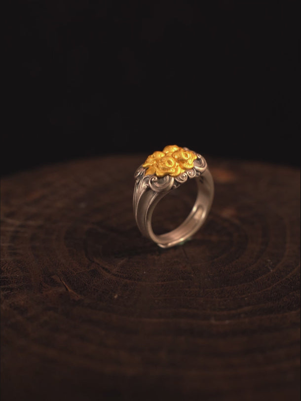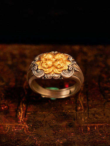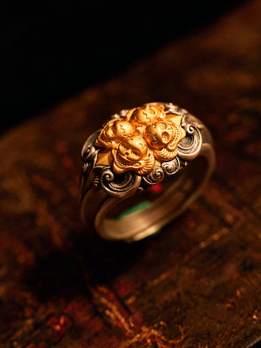 Spiritual Protection Śmaśāna-Adhipati Ring HandmadeSilver Plated with Gold