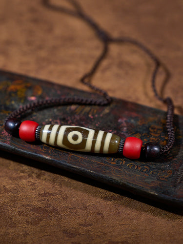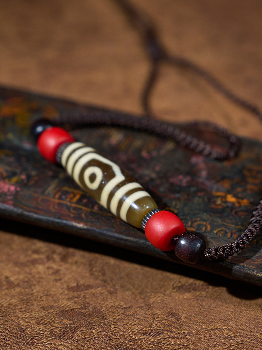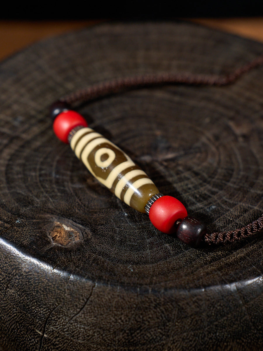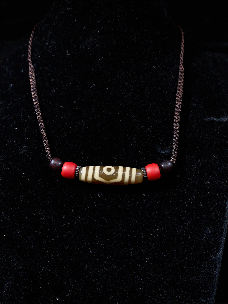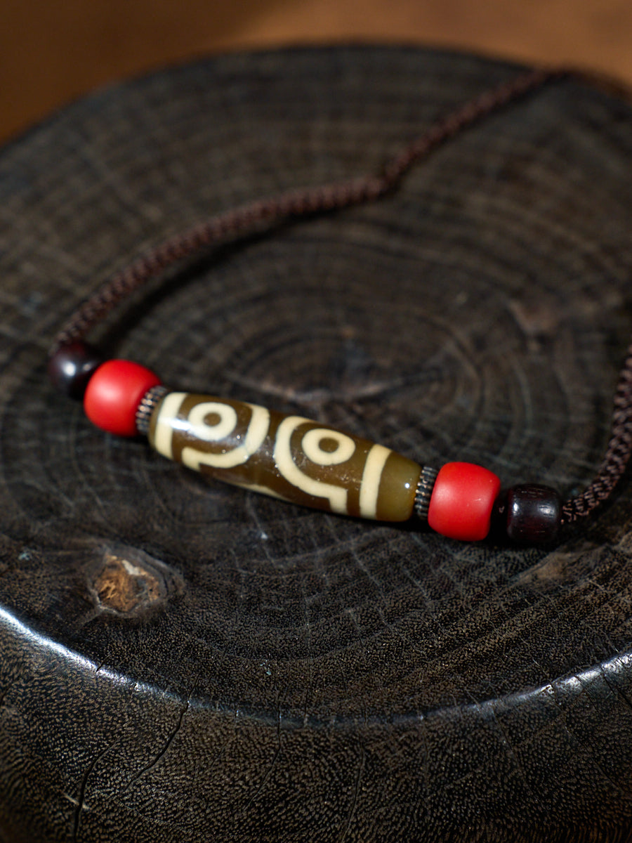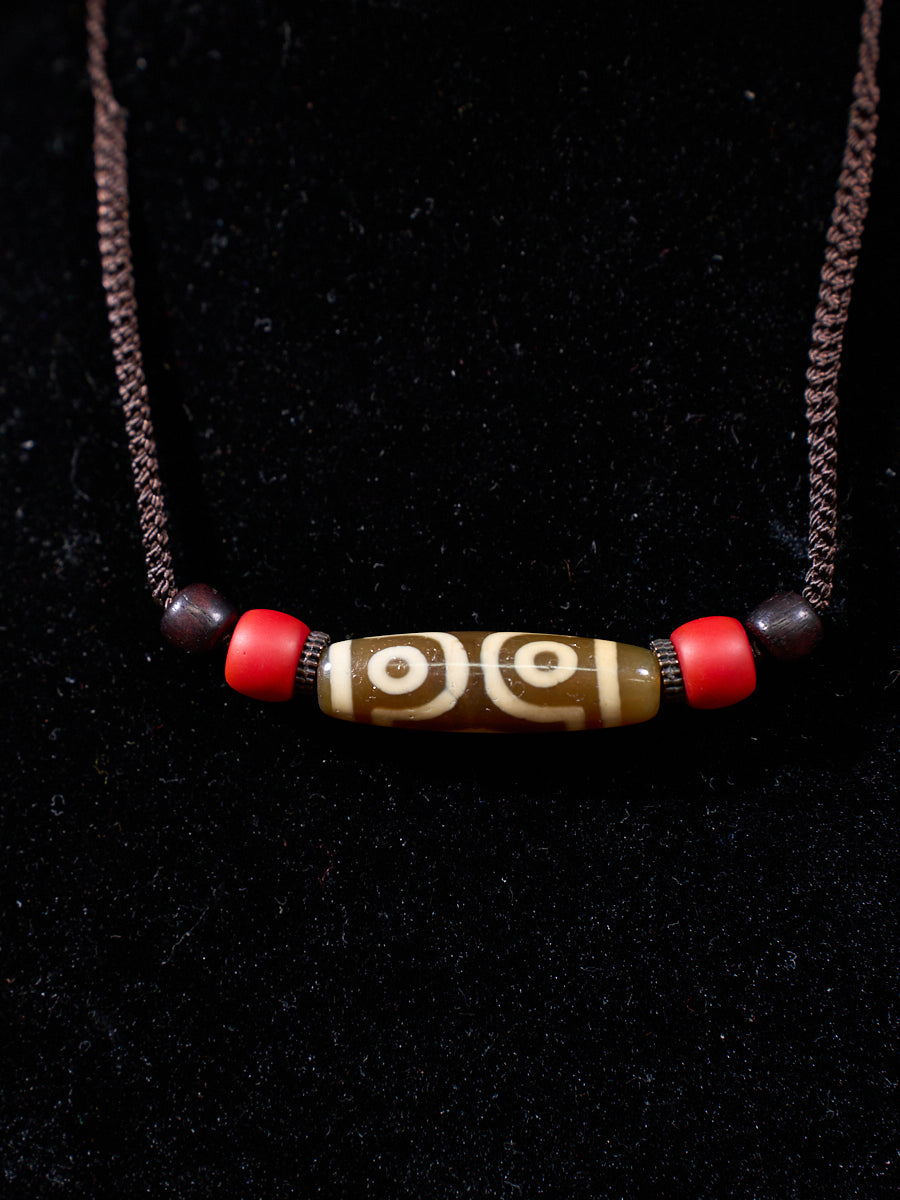 Three-Eyed Dzi Bead Necklace – Tibetan Symbol of Protection & Spiritual Balance