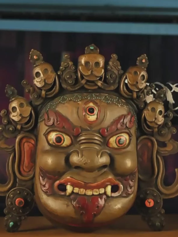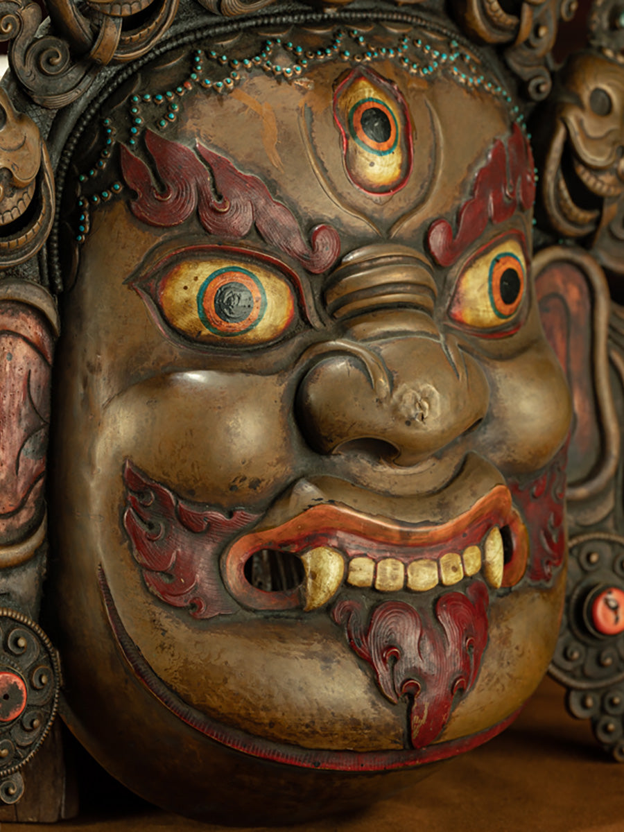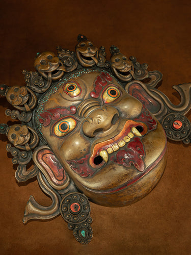 Qing Dynasty Style Mahakala Face Tibetan Large-Scale Hammered Wall Hanging