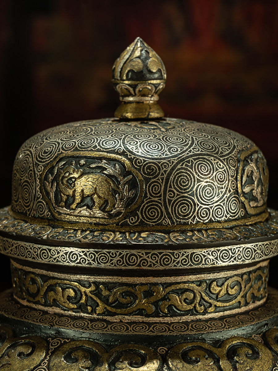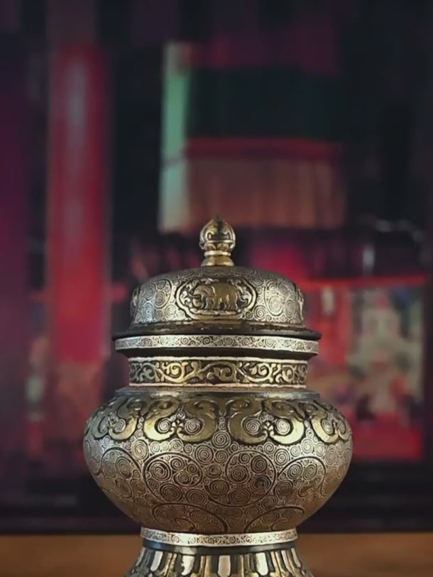 Qing Dynasty Style Tibetan Gilt Silver Inlayed Treasure Vase