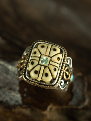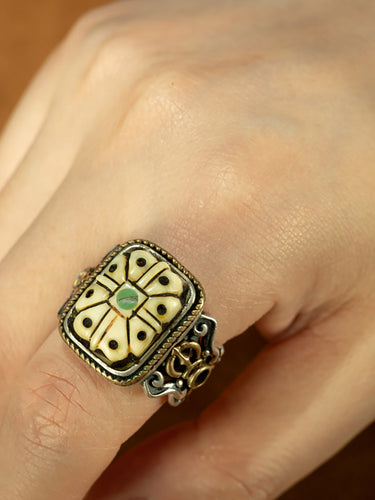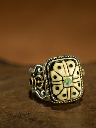 Qing Dynasty Style Tibetan Jadeized Old Material Precious Flower Silver Ring