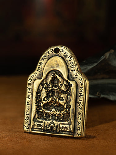 Qing Dynasty Style Tibetan Manjushri Sword-Holding Inscribed Old Stamp Amulet