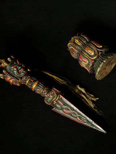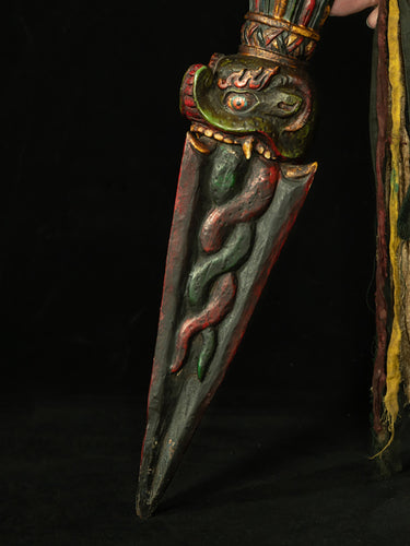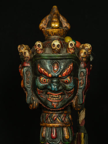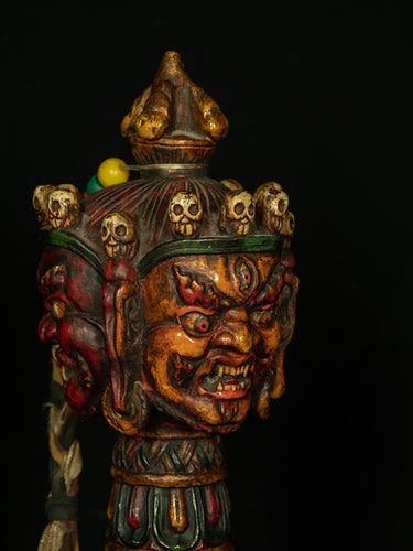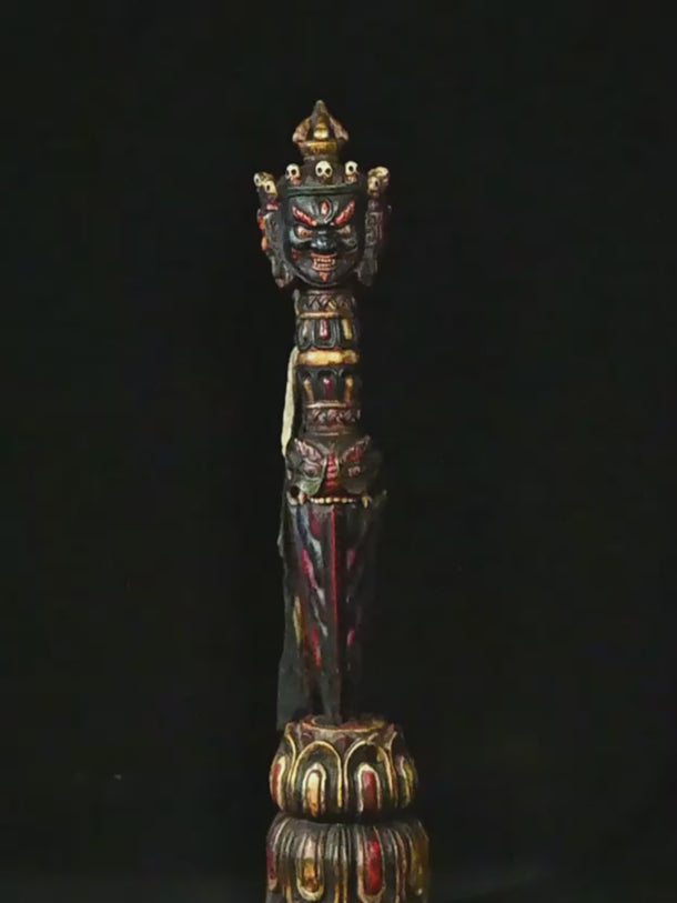 Qing Dynasty Style Tibetan Painted Sandalwood Carved Large Three-Faced Demon-Subduing Dorje