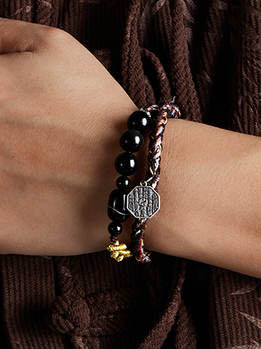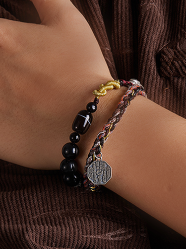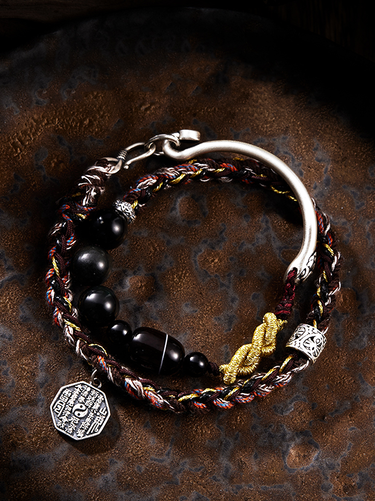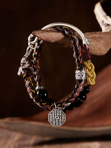 Silver Mountain Spirit Coin Bagua Fortune Beads Bracelet