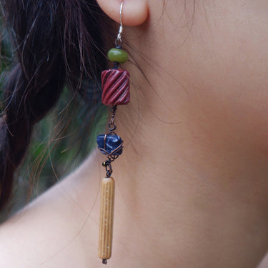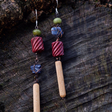 Discover the timeless allure of the Prosperity Lapis Lazuli Earrings, a harmonious blend of vibrant lapis lazuli, polished jade beads, and warm wooden accents. Handcrafted with precision, these earrings symbolize wealth, abundance, and good fortune, making them the perfect accessory for those seeking prosperity in their lives. The rich blue tones of lapis lazuli, complemented by jade's tranquil green, exude a sense of elegance and energy balance. The intricate copper and sterling silver details enhance the earrings' unique charm, creating a sophisticated statement piece.