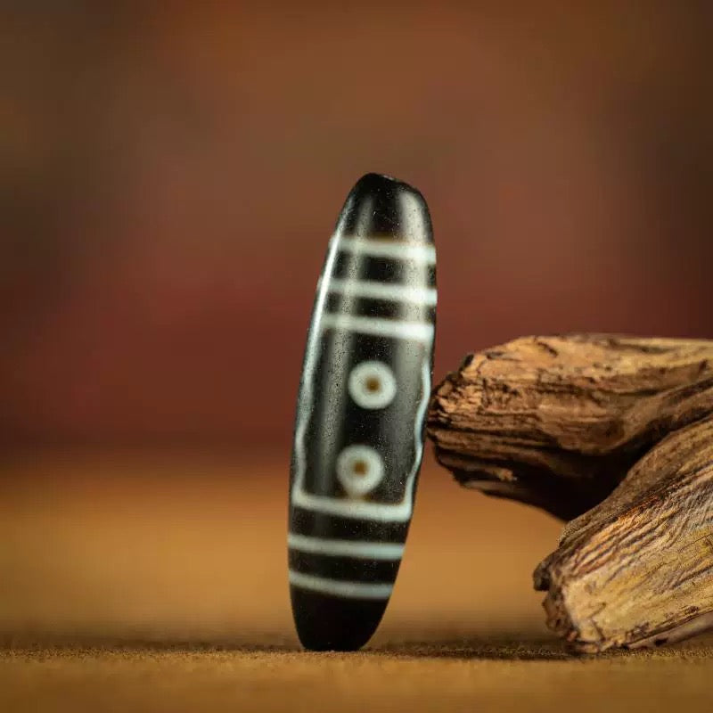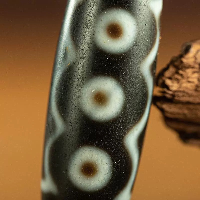 The Five-Eyed Dzi is believed to be blessed by the Five Directional Wealth Deities, symbolizing prosperity, longevity, success in all endeavors, and endless joy and auspiciousness.