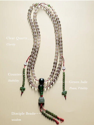 108 Mala Blessings Necklace & Bracelet – Clear Quartz & Green Jade Necklace and Bracelet