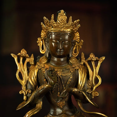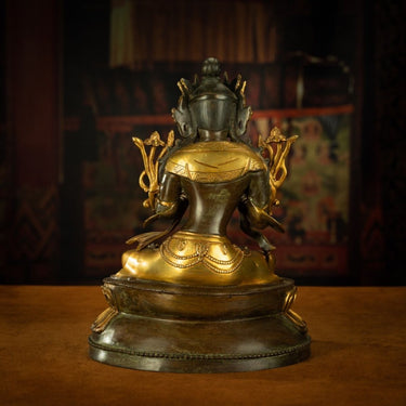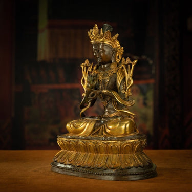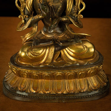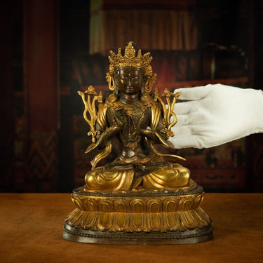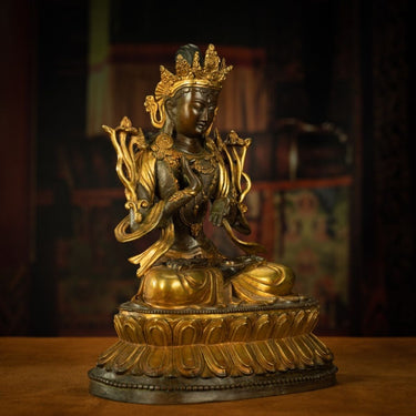 18th Century Tibetan Antique Statue Manjushri Giving Teachings Tibetan Gilt