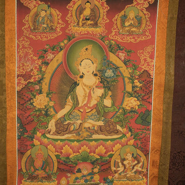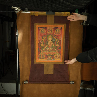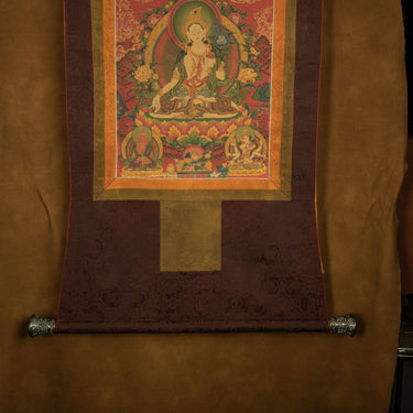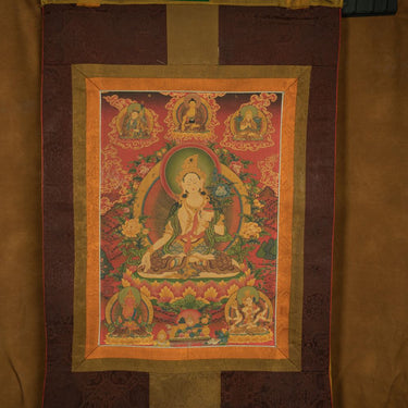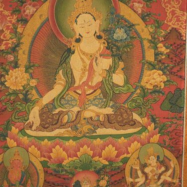 18th Century White Tara old thangka hand-painted Miantang School of Painting