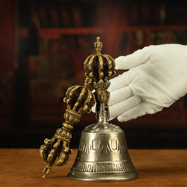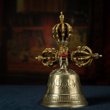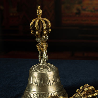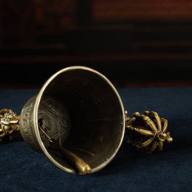 19th Century Tibetan Ritual Bell and Vajra - Copper 9-Prong Thunderbolt Protection Bell