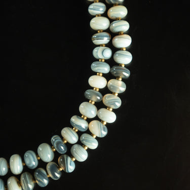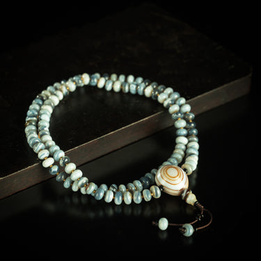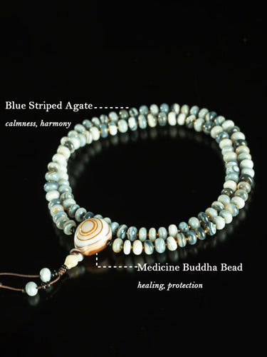 Blue Striped Agate 108 Beads Medicine Buddha Mala Necklace for Healing and Protection