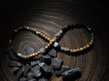 "Fortune Blessings" Zakirum Black Onyx & Agarwood Gray Moonstone Bracelet - Spiritual Guardian Unisex Couple Bracelet