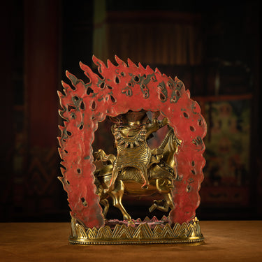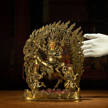 Golden Mahakala Goddess with Sacred Horse Statue for Protection & Strength