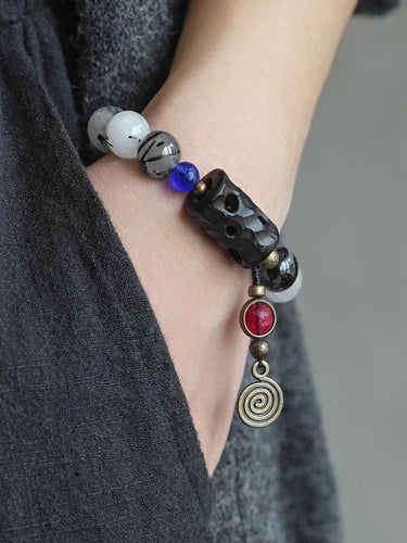 Guardian Energy Bracelet with Black Rutilated Quartz, Ebony & Glaze