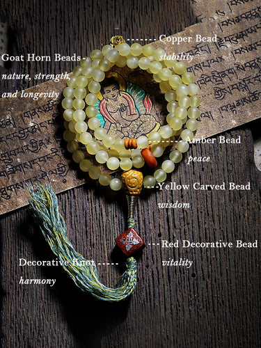 Guardian Yak Bone and Amber Blessing 108 Mala Beads Necklace